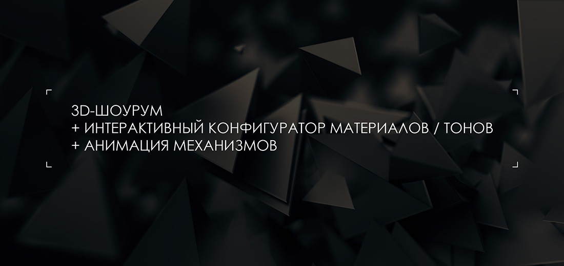 Настоящее и "честное" ТРИ ДЭ (3D)! Тут уже в отличие от переходного варианта-360 вращение объекта по всем возможным осям. Также: прибижение/отдаление, ONLINE смена фактур ткани обивки / материалов / видов дерева / вариантов цветовых оттенков, любые варианты анимации механизмов трансформации, отправка заявки на получившуюся кастом-модель мебели и другие опции, которые вы захотите. Ключ к индивидуалистскому и custom-ориентированному рынку будущего, доступный уже сейчас!