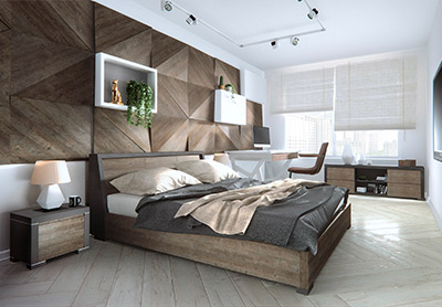 Визуализация деревянных декоративных настенных панелей в интерьере