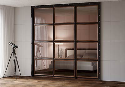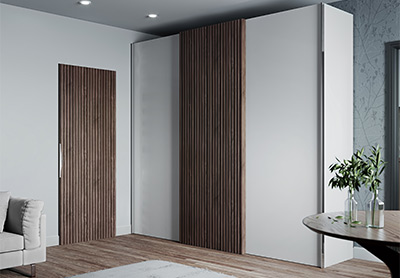 Визуализация шкафов-купе на белом фоне и в интерьере