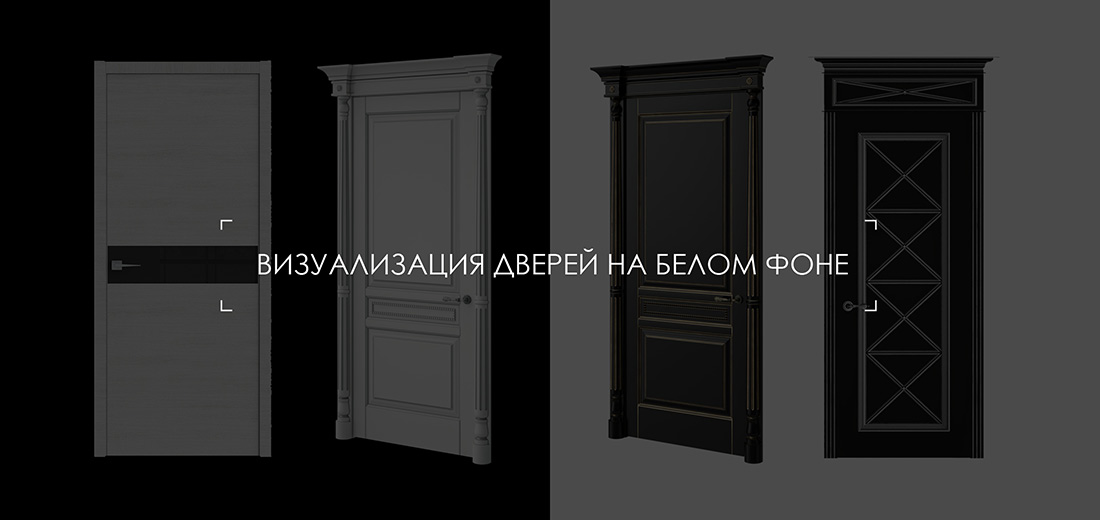 К визуализации дверей на белом фоне требуется особый подход. Чтобы привычная прямоугольная формуа двери на студийных кадрах с белым фоном выглядела реалистично, эффектно и объемно нужно тщательно поработать с ее освещением.
